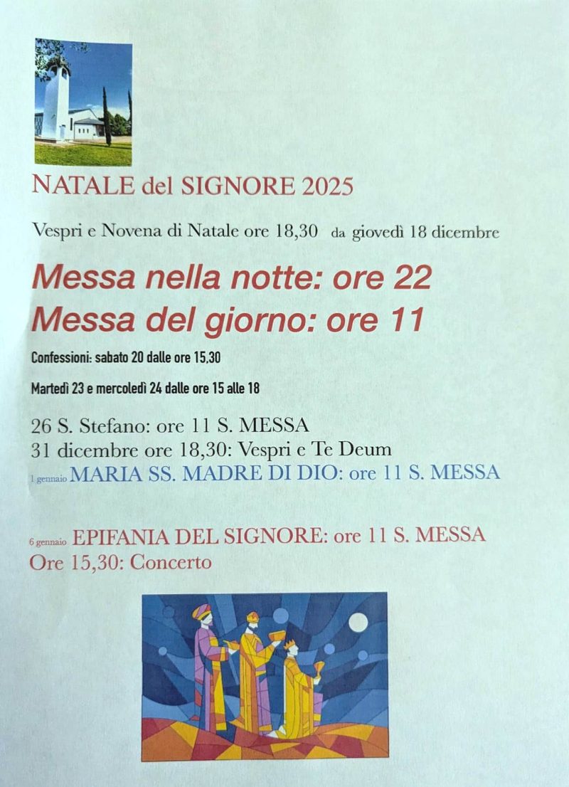 SAN LUCA – Ecco il programma delle celebrazioni per le feste del Natale nella nostra parrocchia, fino all’Epifania. La comunità parrocchiale di san Luca Evangelista si prepara a vivere il Natale del Signore 2025 con un ricco calendario di celebrazioni liturgiche e momenti di preghiera, che accompagneranno i fedeli dal tempo di preparazione fino all’Epifania. A partire da giovedì 18 dicembre, ogni sera alle ore … Continue reading Il programma del Natale 2025 »