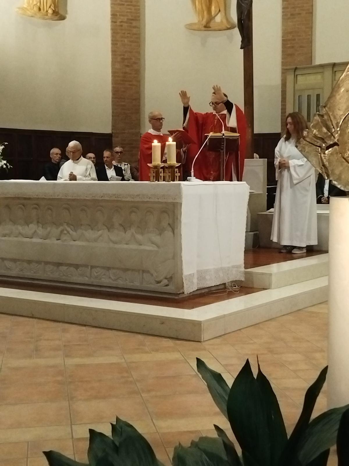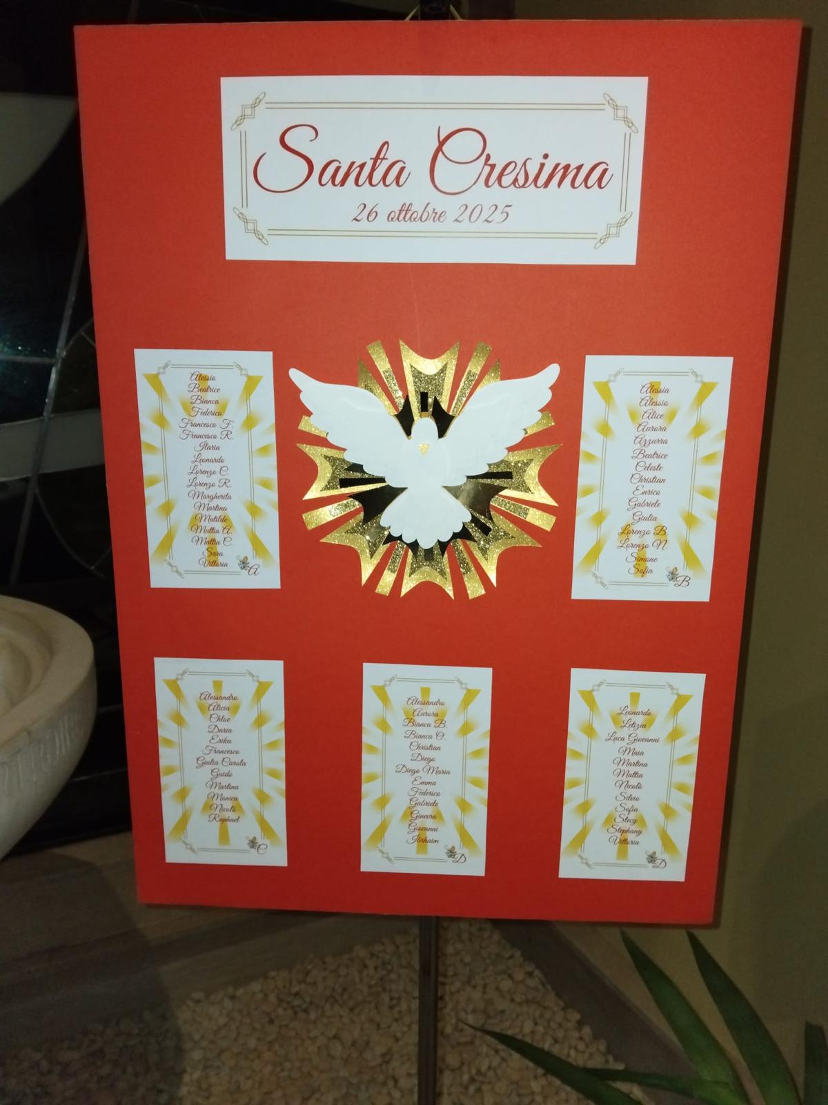 Domenica 26 ottobre, nella nostra chiesa adorna di fiori bianchi e rossi a significare la purezza dell’amore di Dio e il rosso il fuoco dello Spirito Santo, 70 ragazzi e un adulto appartenenti alle parrocchie di San Lazzaro e di Santa Maria Assunta e San Gabriele dell’Addolorata di Idice, hanno ricevuto il sacramento della Cresima. I loro nomi scritti su un manifesto, appositamente preparato da una catechista, facevano da cornice al simbolo dello Spirito Santo e collocato in chiesa accanto al fonte battesimale, come a sottolineare il completamento del loro percorso dall’ingresso nella Chiesa con il Battesimo, fino alla conferma della fede e della pienezza dello Spirito Santo nella Cresima.