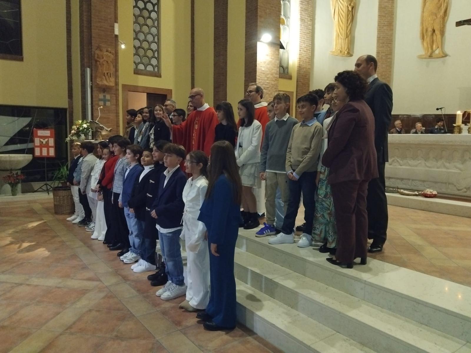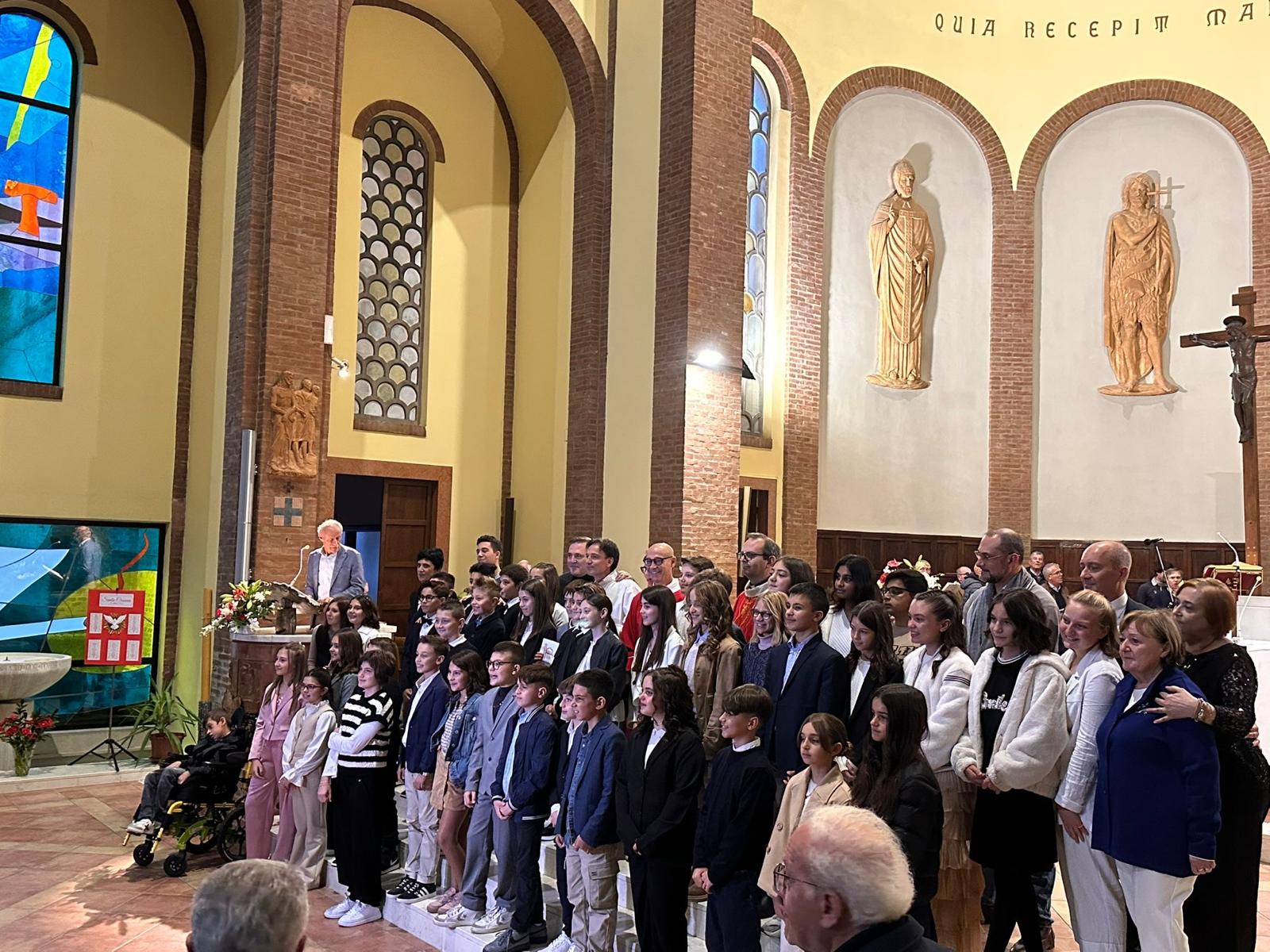 Al loro ingresso processionale, i ragazzi, visibilmente emozionati, accompagnati da don Stefano e dal celebrante delegato dal Vescovo, don Davide Baraldi, hanno trovato una chiesa gremita di fedeli, di parenti e amici per fare festa insieme.