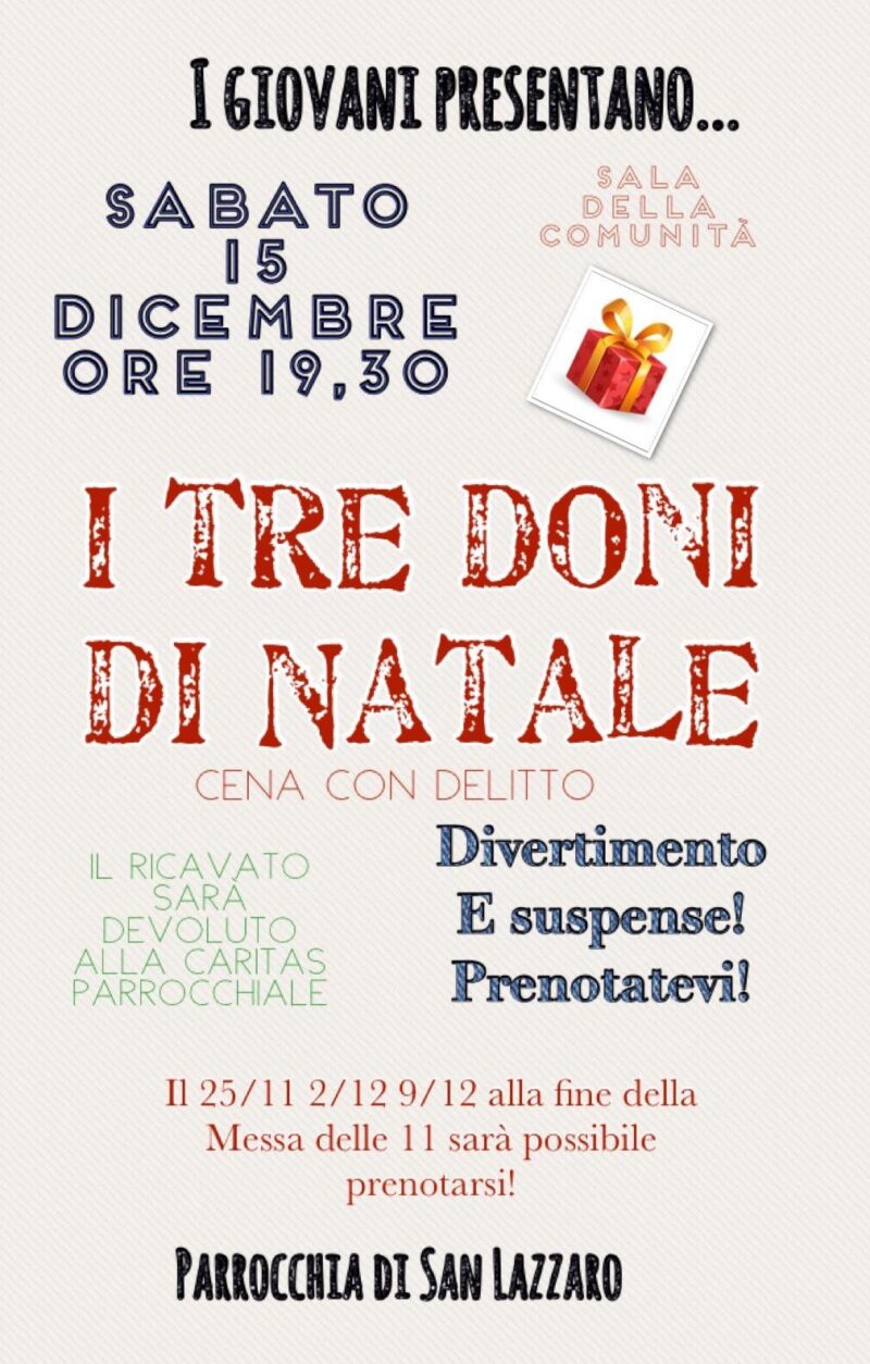 Sabato 15 dicembre 2018 alle ore 19.30 nella sala di comunità (teatrino) i giovanissimi della parrocchia presentano la cena con delitto dal titolo: