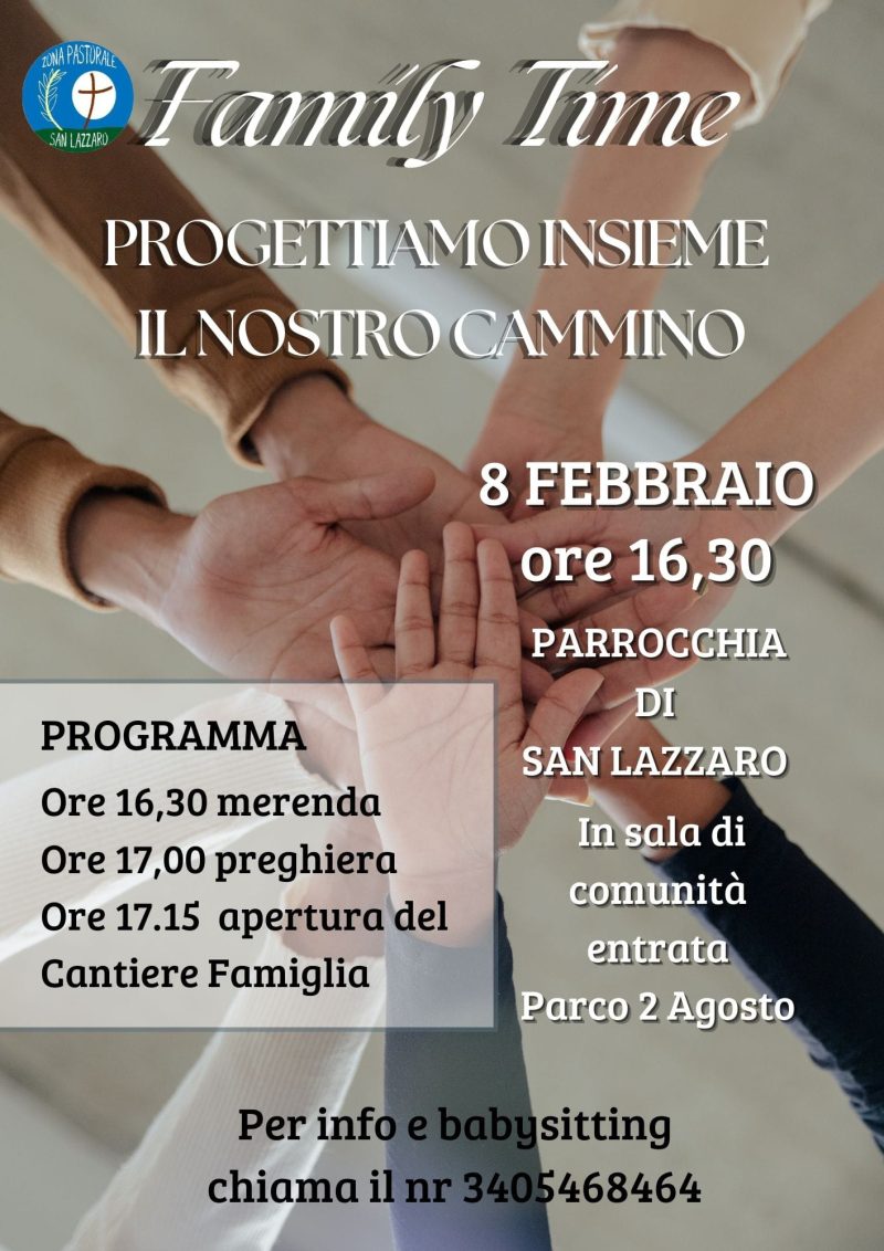 ZONA PASTORALE – L’Ambito Famiglia della Zona Pastorale propone un appuntamento dedicato a tutte le famiglie: domenica 8 febbraio, presso la parrocchia di San Lazzaro, si terrà il secondo incontro comunitario.