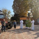 Il lavoro dell’uomo nei campi è aiutato da mezzi agricoli, in particolare dai trattori, perciò alla fine della Messa, nel sagrato, sono stati benedetti questi mezzi.