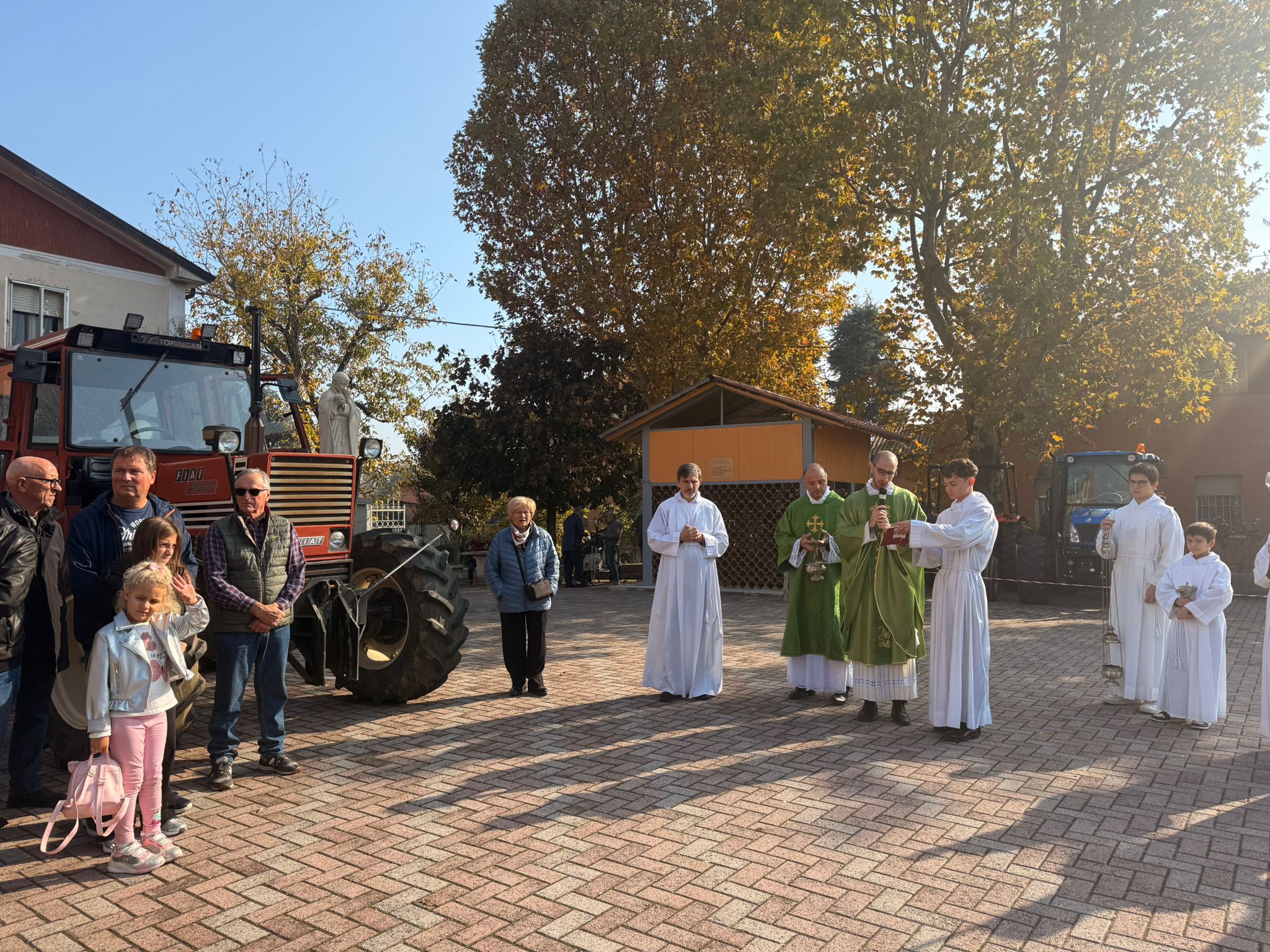 Il lavoro dell’uomo nei campi è aiutato da mezzi agricoli, in particolare dai trattori, perciò alla fine della Messa, nel sagrato, sono stati benedetti questi mezzi.
