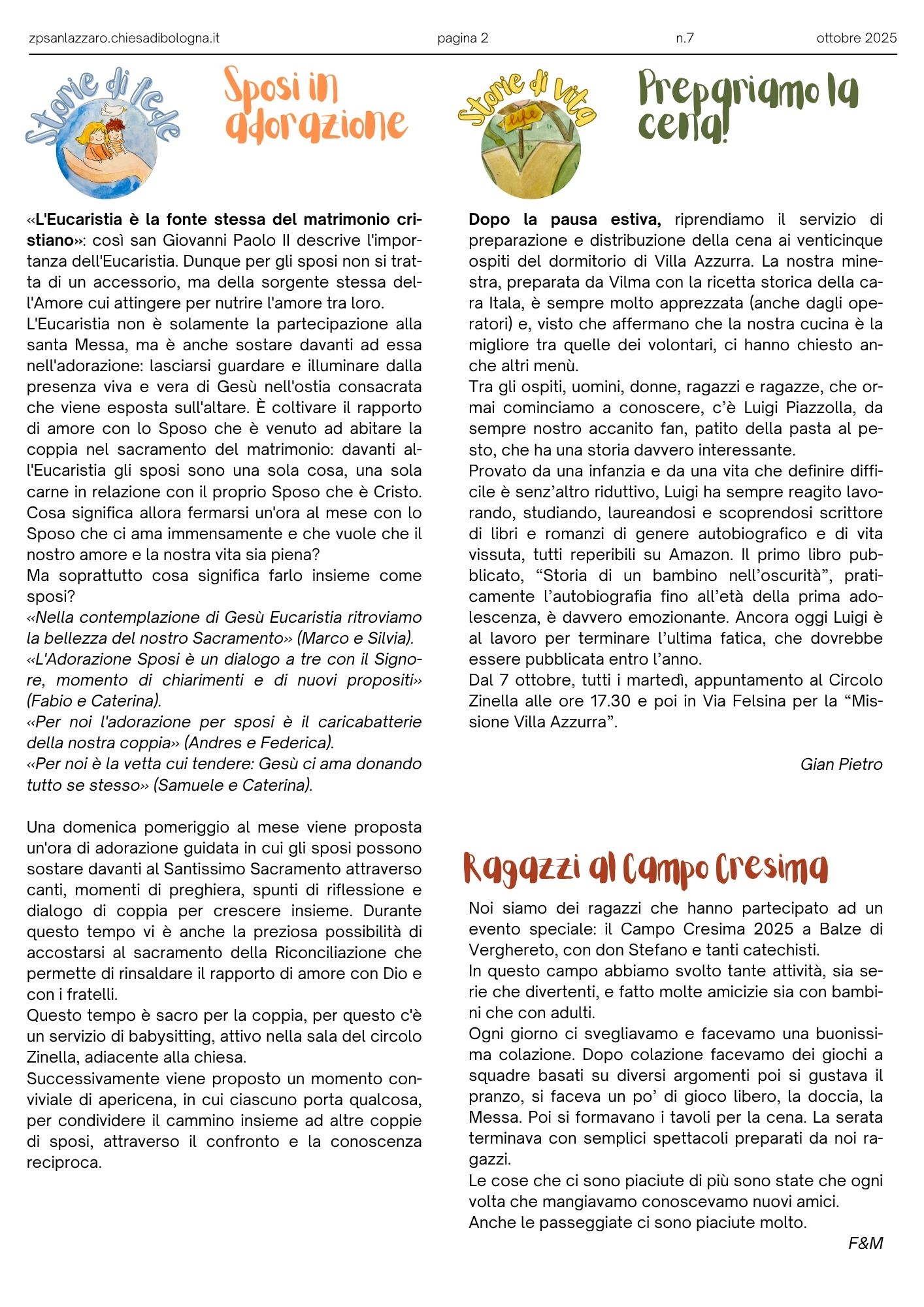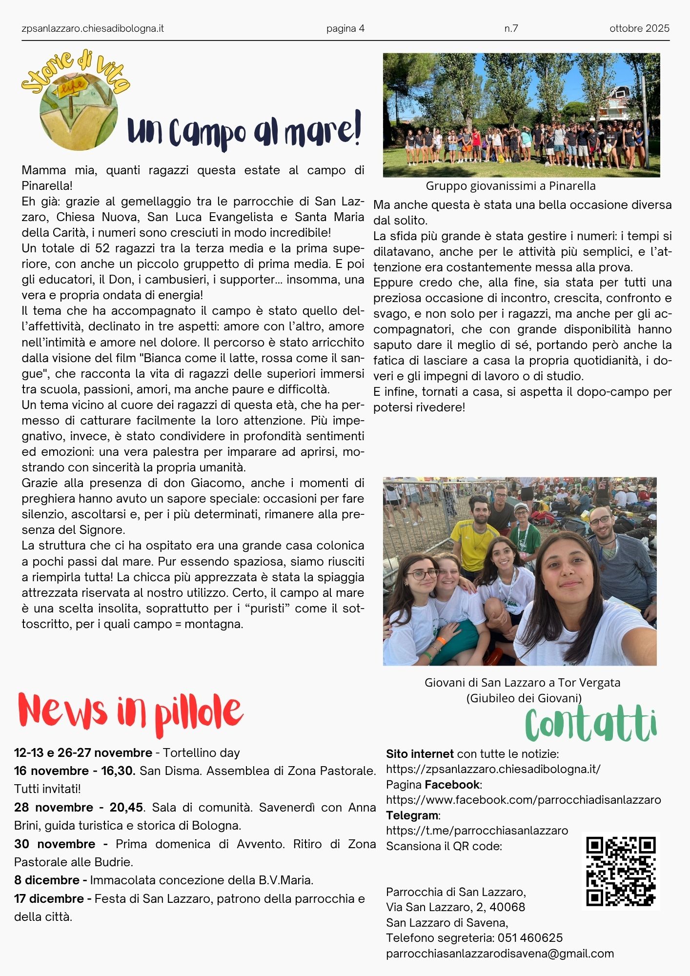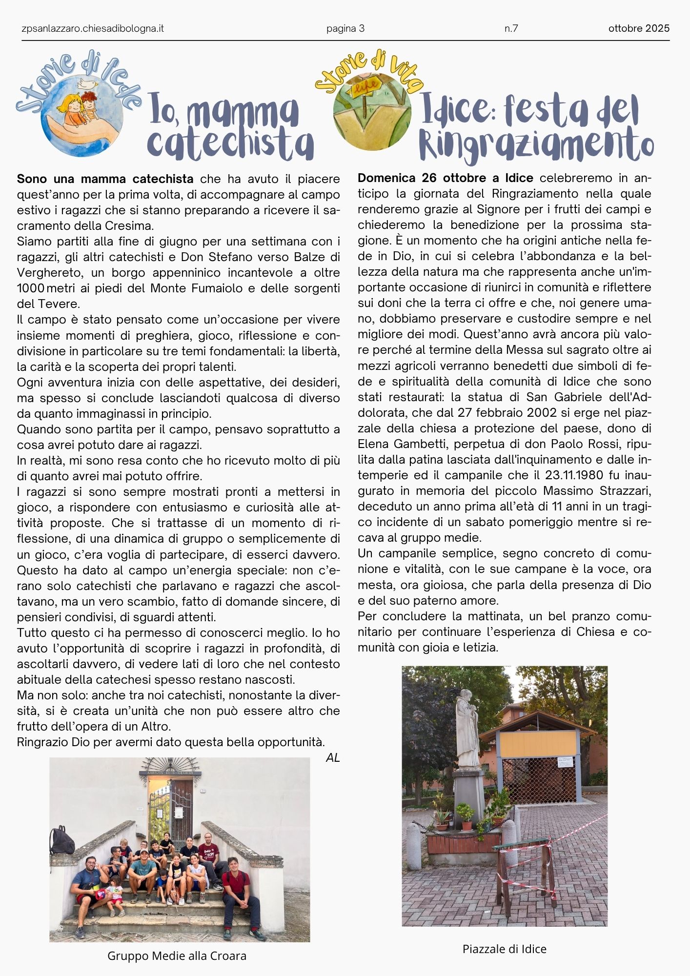SAN LAZZARO – Pubblichiamo il n.7 del “Cantastorie”, il giornalino di storie e testimonianze della parrocchia di San Lazzaro.