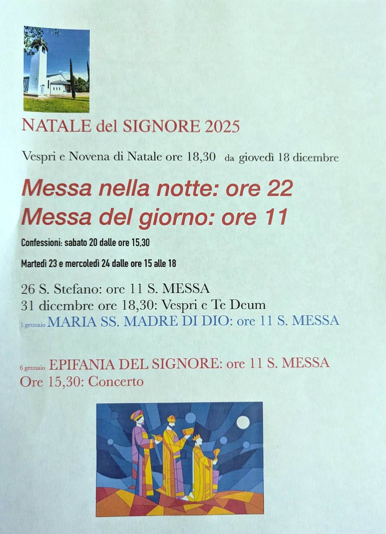 6 gennaio – Epifania del Signore: Santa Messa alle ore 11.00. Nel pomeriggio, alle ore 15.30, si terrà un concerto, momento di festa e condivisione per tutta la comunità.