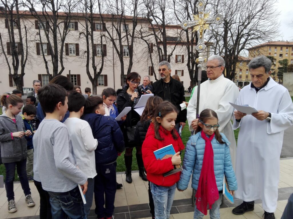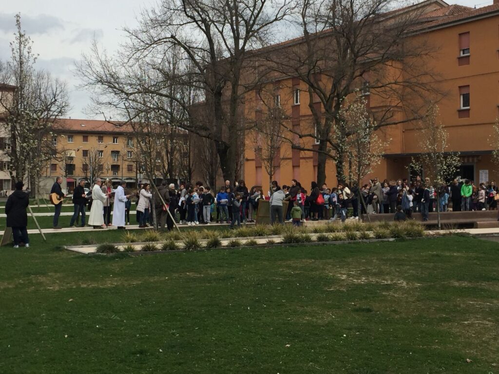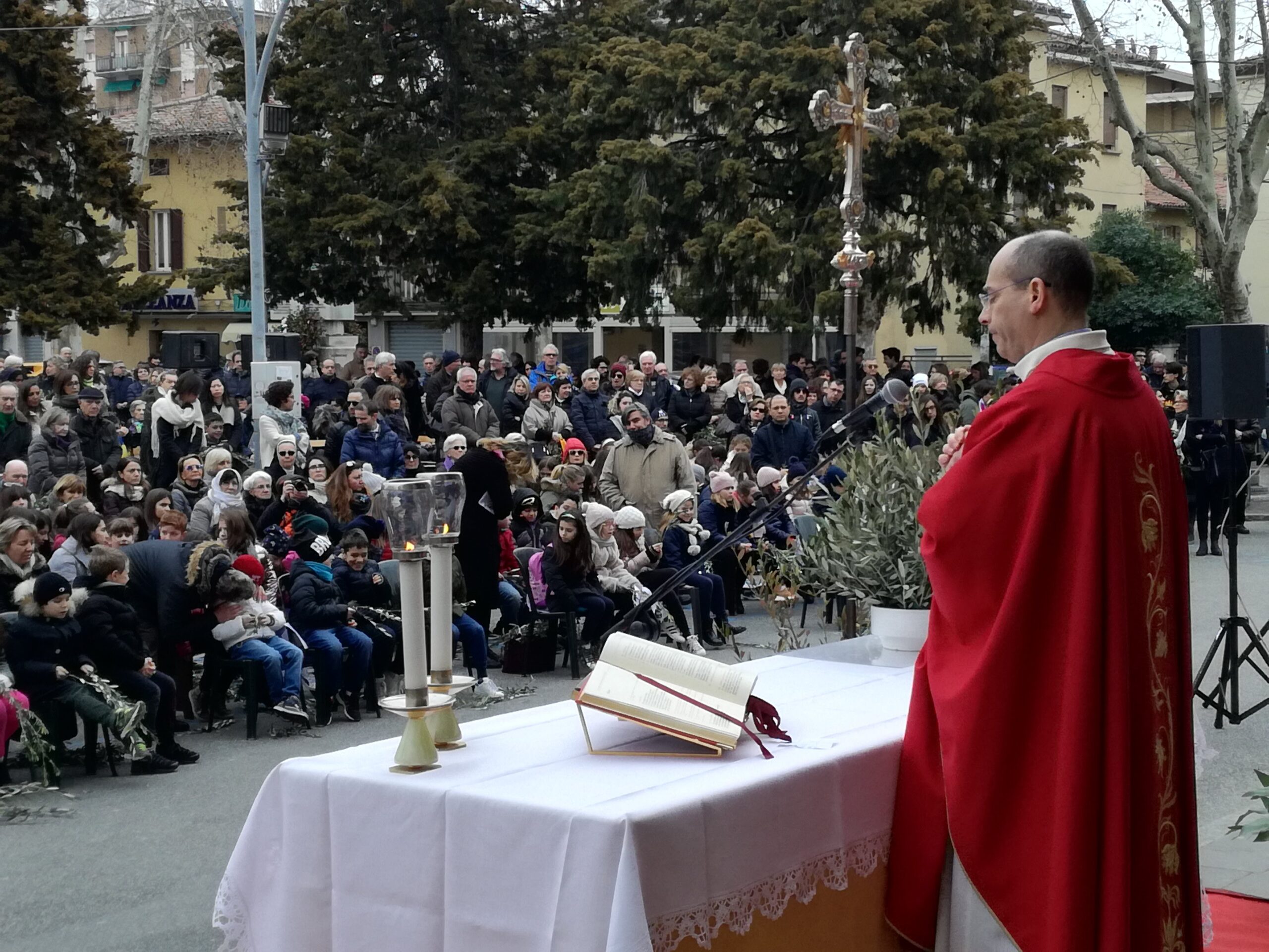 Il giorno della Domenica delle Palme ha visto molte persone in procesione e la celebrazione eucaristica si è svolta nella piazza di San Lazzaro con l’altare allestito davanti al portico della Chiesa.