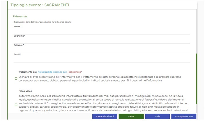 3) Nel punto 3 della schermata, sotto il proprio nome, cliccare su ‘Modulo da compilare’ ed inserire i dati del proprio fidanzato o fidanzata (vedi figura 3). Salvare e inviare il modulo. Verrete contattati via e-mail per le informazioni successive.