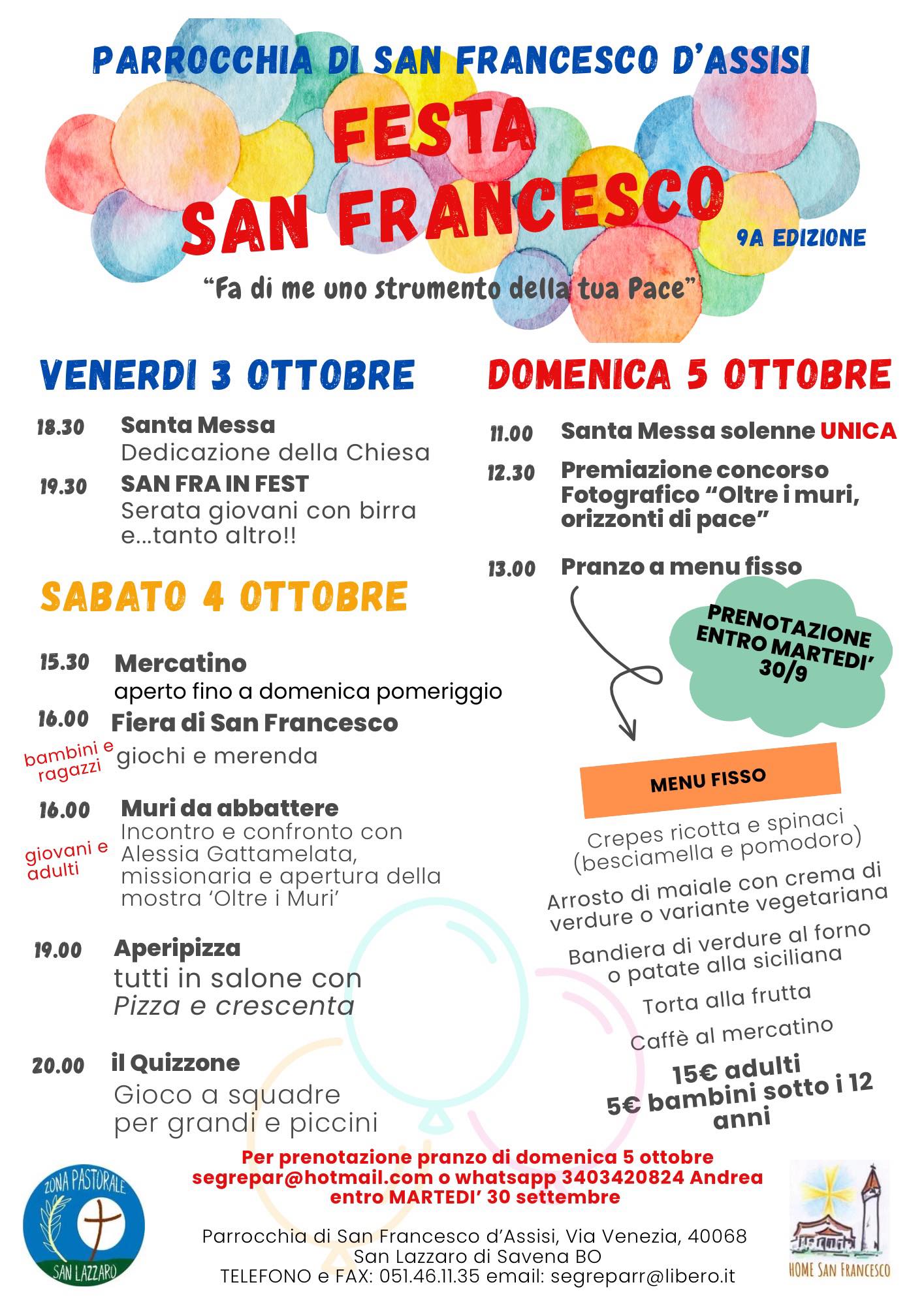 SAN FRANCESCO – Due grandi feste in ottobre con la Messa della dedicazione e la Messa nella festa di San Francesco, nostro patrono.