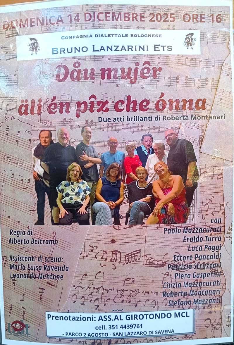 Parrocchia di S. Lazzaro di Savena, Volantini 29 Novembre 2025 domenica 14 Dicembre 16:00 Commedia dialettaleInizio: 14/12/2025 16:00