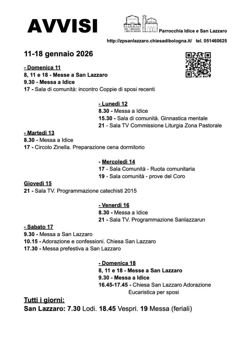 Parrocchia di S. Lazzaro di Savena, Volantini 11 Gennaio 2026 Avvisi 11-18 gennaio domenica 18 Gennaio Descrizione: Avvisi 11-18 gennaio Inizio: 18/01/2026 23:00 Fine: 18/01/2026 23:00 Categorie: Parrocchia di S. Lazzaro di Savena, Volantini