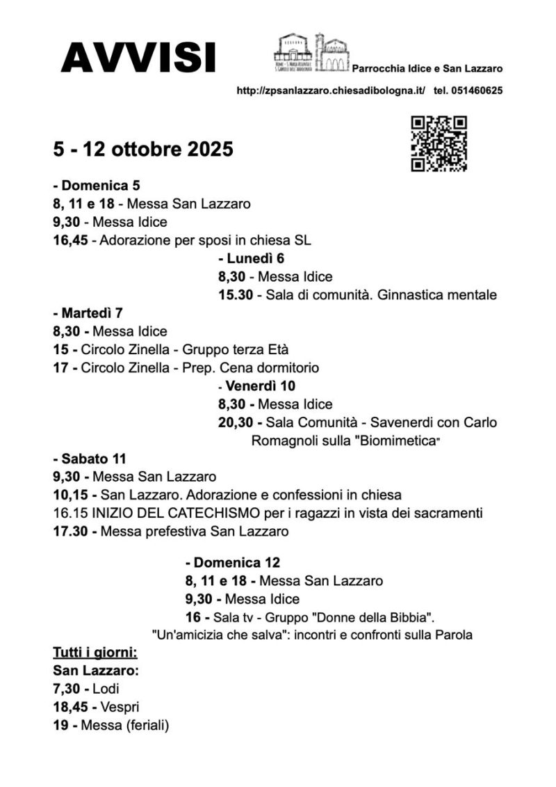 Parrocchia di S. Lazzaro di Savena, Parrocchia Santa Maria Assunta e San Gabriele 5 Ottobre 2025 Avvisi 5-12 ottobre domenica 12 Ottobre Descrizione: Avvisi 5-12 ottobre Inizio: 12/10/2025 23:00 Fine: 12/10/2025 10:00 Categorie: Parrocchia di S. Lazzaro di Savena, Parrocchia Santa Maria Assunta e San Gabriele