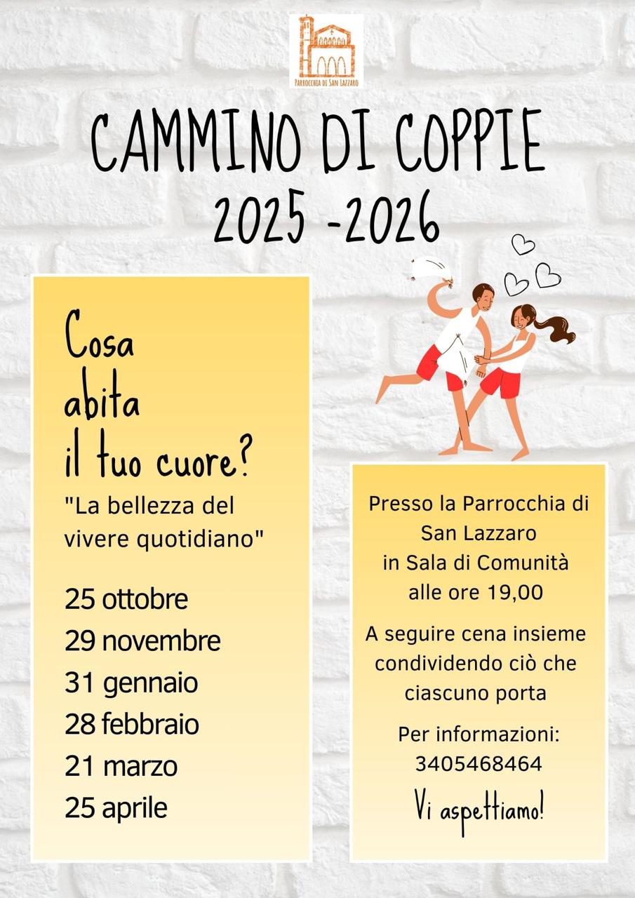 Parrocchia di S. Lazzaro di Savena, Volantini 20 Marzo 2026 Cammino di coppie sabato 21 Marzo Descrizione: Cammino di coppie. Sabato 21 marzo, ore 19, in Sala di Comunità. Inizio: 21/03/2026 21:00 Fine: 21/03/2026 21:00 Categorie: Parrocchia di S. Lazzaro di Savena, Volantini
