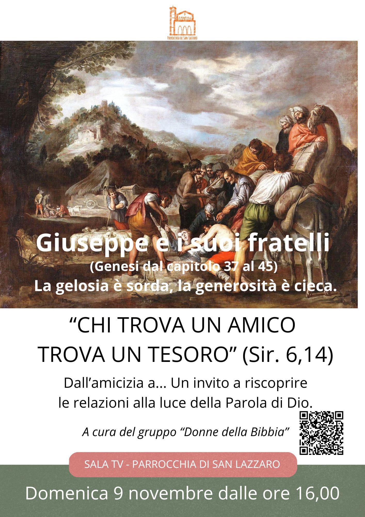 Parrocchia di S. Lazzaro di Savena, Volantini 2 Novembre 2025 Giuseppe e i suoi fratelli. Gruppo “Donne della Bibbia” domenica 9 Novembre Descrizione: Giuseppe e i suoi fratelli. Gruppo “Donne della Bibbia” Inizio: 09/11/2025 16:00 Fine: 09/11/2025 18:00 Categorie: Parrocchia di S. Lazzaro di Savena, Volantini