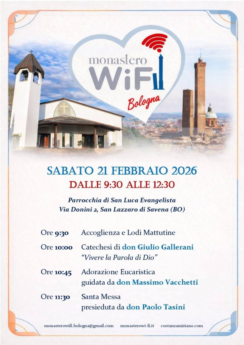 Parrocchia di San Luca, Volantini 21 Febbraio 2026 Monastero WiFi sabato 21 Febbraio Descrizione: Monastero WiFi Inizio: 21/02/2026 13:00 Fine: 21/02/2026 13:00 Categorie: Parrocchia di San Luca, Volantini