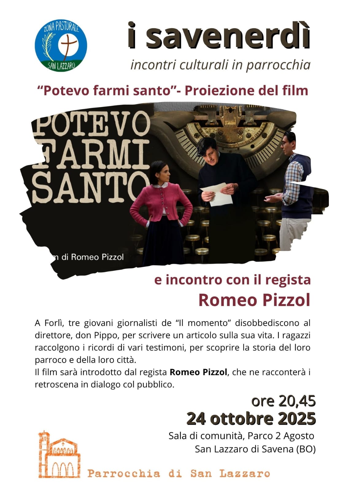 Parrocchia di S. Lazzaro di Savena, Volantini 7 Ottobre 2025 “Potevo farmi santo”. Film e incontro col regista. venerdì 24 Ottobre Descrizione: “Potevo farmi santo”. Film e incontro col regista. Inizio: 24/10/2025 21:00 Fine: 24/10/2025 23:00 Categorie: Parrocchia di S. Lazzaro di Savena, Volantini