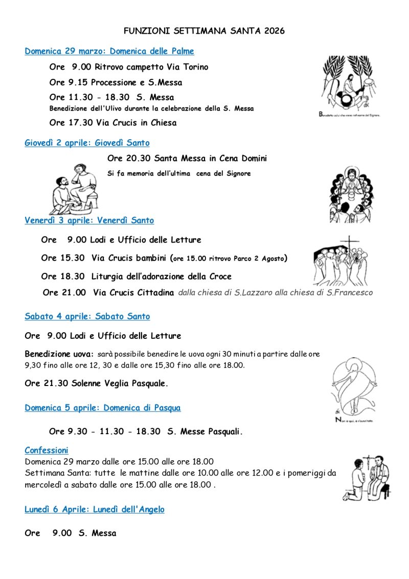 Parrocchia di San Francesco, Volantini 26 Marzo 2026 lunedì 6 Aprile 00:00 La Settimana Santa a San Francesco d’AssisiInizio: 06/04/2026 00:00