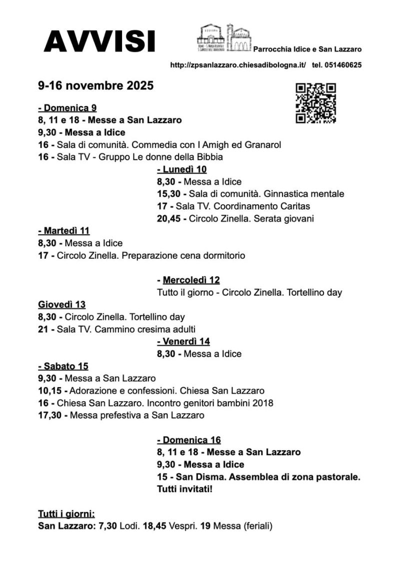 Parrocchia di S. Lazzaro di Savena, Parrocchia Santa Maria Assunta e San Gabriele, Volantini 8 Novembre 2025 domenica 16 Novembre 22:00 Avvisi 9-16 novembreInizio: 16/11/2025 22:00